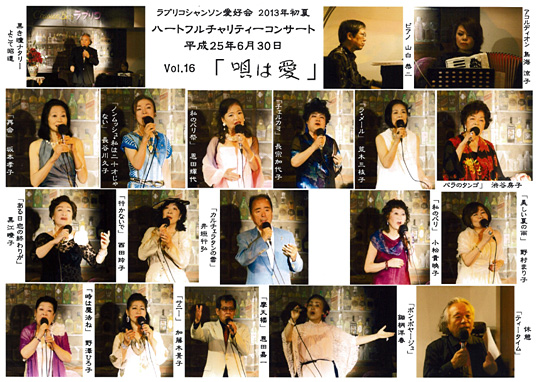 | 当会が発足したのは1990年2月。場所は新橋にあったライブとフランス料理の店「ラブリコ」。 当初は土曜日の午後、月1回の開催でしたが、会員が増えたことから1996年春、現在の「アプリコットハウス」に移転し、土曜・水曜、その他金曜などに開催しています。 2009年11月には20周年記念コンサートを内幸町ホールで開催しました。 そして2015年には25周年コンサート企画しています。 なお、レストラン「ラブリコ」は千代田区平河町の砂防会館に移転し、現在盛業中です。 |